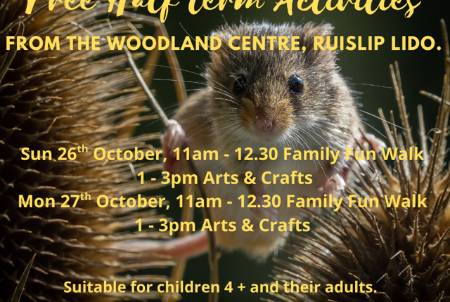 Free Half Term Fun Activities for children and families organised by Hillingdon Council at the Woodland Centre beside Ruislip Lido. Games, mini beast hunts and art to kick start the holidays.